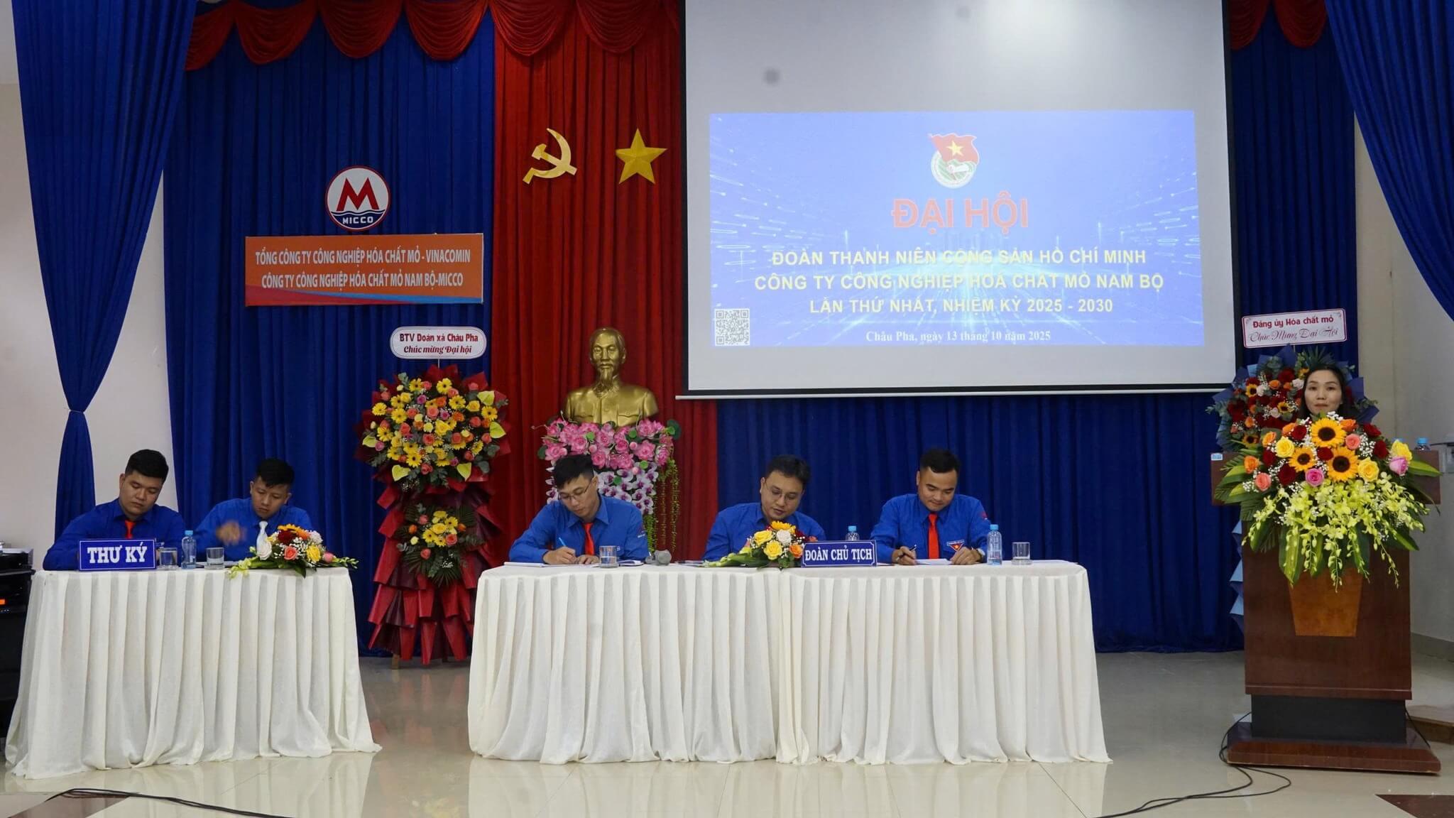 Ngày 13/10/2025, tại Hội trường Công ty Hóa chất mỏ Nam Bộ (ấp 6, xã Châu Pha, TP. Hồ Chí Minh), tuổi trẻ MICCO Nam Bộ đã long trọng tổ chức Đại hội Đoàn TNCS Hồ Chí Minh Công ty Công nghiệp Hóa chất mỏ Nam Bộ nhiệm kỳ 2025–2030.