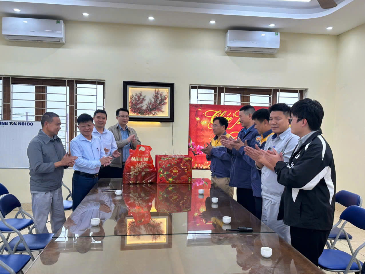 Đồng chí Giám đốc công ty chúc mừng năm mới 2026 tại phân xưởng kho Hóa chất mỏ Cẩm Phả